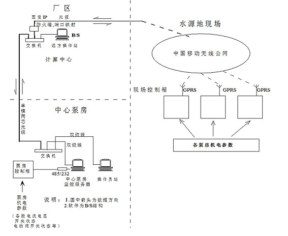 本系統(tǒng)現(xiàn)場(chǎng)分為兩類(lèi):遠(yuǎn)方各井位和中心泵房處