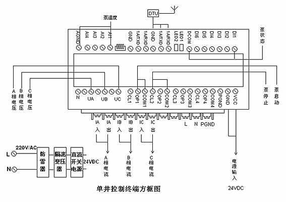 遠(yuǎn)方每口井位都放一遠(yuǎn)程控制箱,結(jié)合系統(tǒng)功能,其內(nèi)核心設(shè)備為RTU和DTU.
