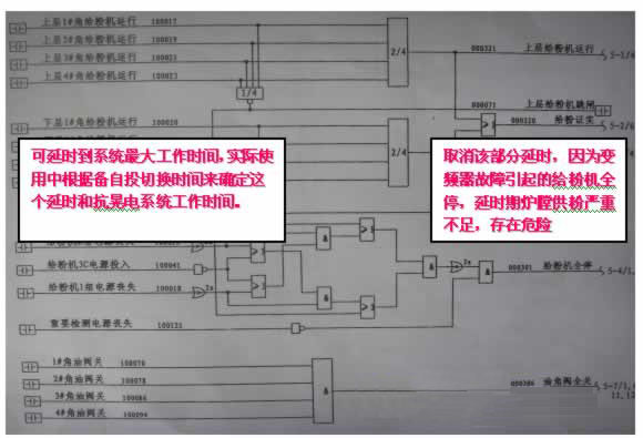 2、理論上可以將FSSS的1、2組電源喪失信號延時做到抗晃電系統(tǒng)最大工作時間,因為這個時期給粉機變頻器還是正常工作的。實際使用中根據(jù)電廠其他系統(tǒng)的抗晃電能力和備自投切換時間來設置這個延時和抗晃電系統(tǒng)的工作時間,一般為2~3S。