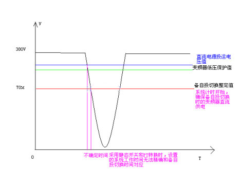 通過軟件設置母線欠壓保護閥值和計時(0.1S),使系統(tǒng)工作時間精確可控。